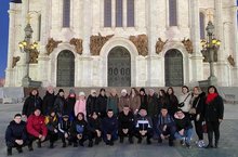 Группа учащихся школы побывала в Москве . Они познакомились с достопримечательностями Москвы.