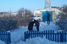 10 сыйныф укучылары авыл уртасындагы обелиск тирәсен кардан чистарттылар.