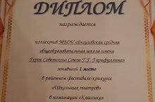 2019 ел- театр елы дип игълан ителгән иде. Әлеге уңайдан район күләмендә коллективлар арасында театр конкурсы узды. Әле конкурста мәктәбебезнең иҗат коллективы "Саташу" драмасын сәхнәгә куйды һәм "Классика" номинациясендә 1 урынны яулады. Молодцы!