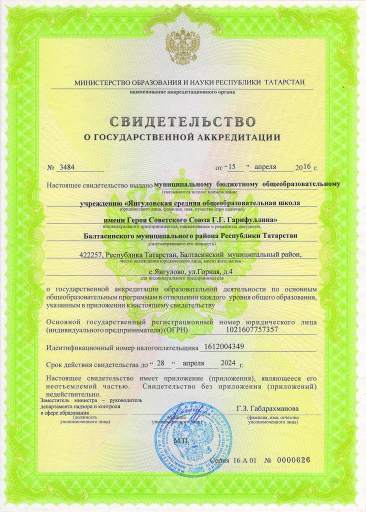 муниципальное бюджетное общеобразовательное учреждение «Янгуловская средняя общеобразовательная школа имени Героя Советского Союза Г.Г. Гарифуллина» Балтасинского муниципального района Республики Татарстан/Татарстан Республикасы Балтач муниципаль районы муниципаль бюджет гомуми белем учреждениесе «Советлар Союзы Герое Г.Г. Гарифуллин исемендәге Яңгул урта гомуми белем мәктәбе».