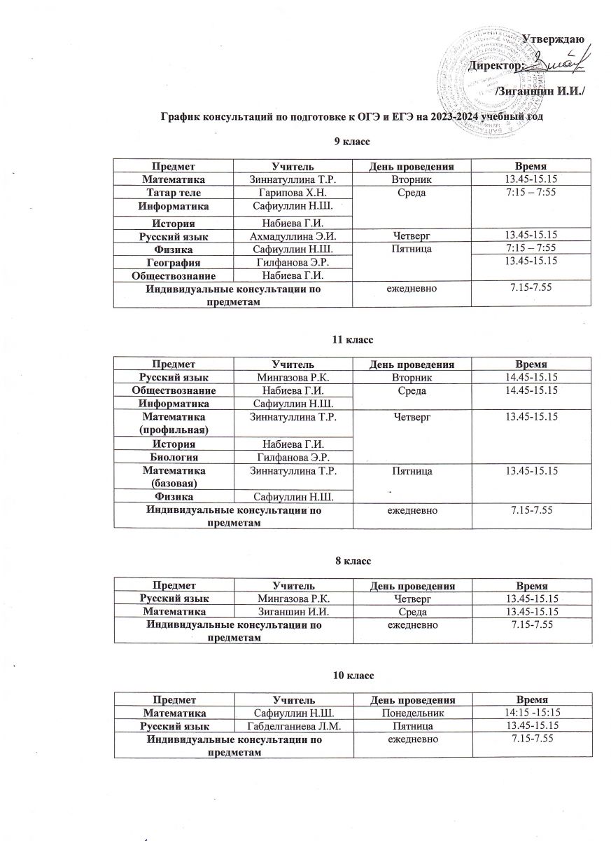 График консультаций по подготовке к ГИА на 2023-2024 учебный год