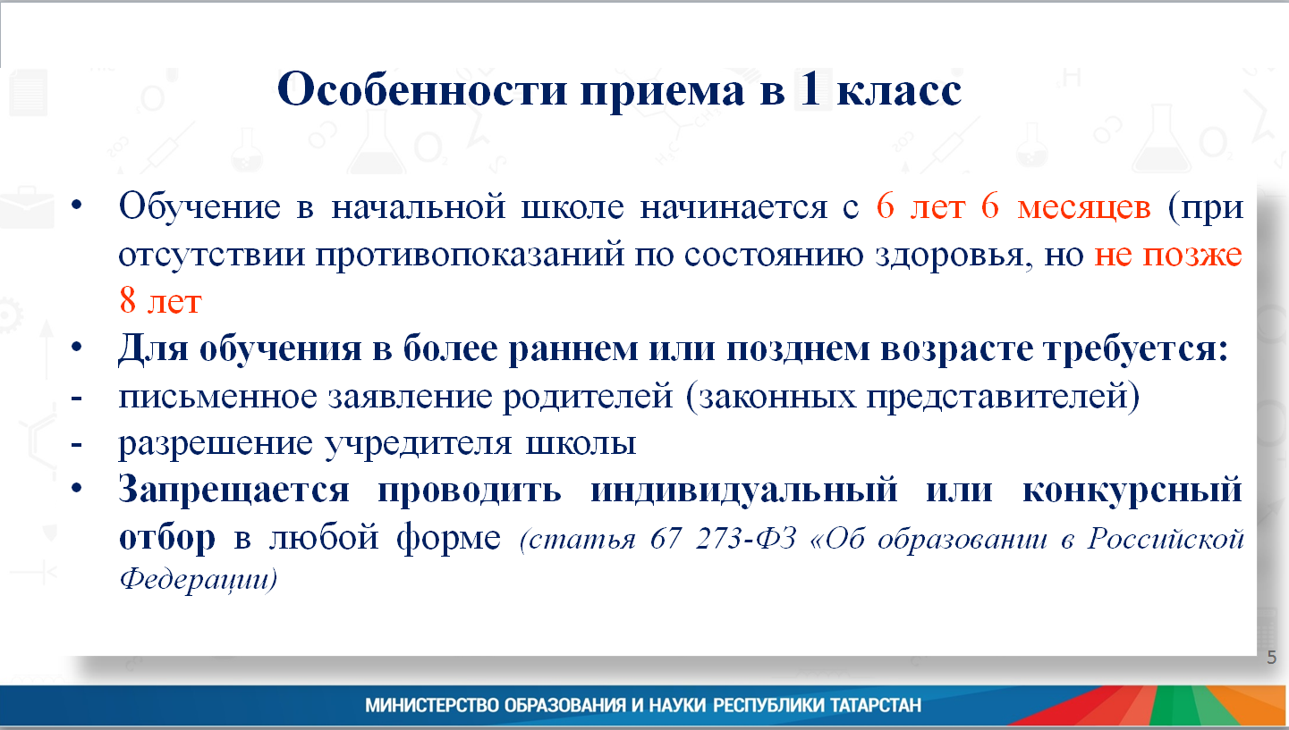 Особенности приёма в 1 класс