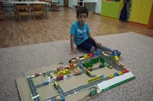 Риназ любит играть с маленькими машинками, строить из конструктора различными постройками и обыгривать их. Вот какой маленький автогородок у него получился!