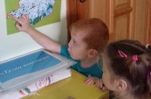 2 кечкенәләр төркемендә "Туган авылым, туган Республикам" проектында һәр бала туган авылын Балтач районы картасында табып, тамга салды.