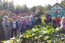Коллективный труд на нашем огороде. Помогаем помощникам воспитателя собирать тыкву.