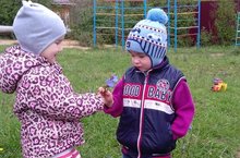 Дети при помощи кегли определяют, кто будет "водить" в игре.
