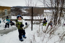 Мы дружно строим крепость из снега.