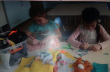 С детьми подготовительной группы познакомились с Дымковскими игрушками. Интересно было узнать о том, как их изготовляют, разукрашивают. А потом яркими цветами расскрасили силуэты игрушек.