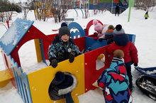 Кечкенәләр - уртанчылар төркемендә балалар саф һавада яңа кайткан уен мәйданчыгында бик теләп уйныйлар.