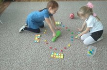 Очень интересно наблюдать за детьми. Девочки усложнили игру, они не просто берут фигурки, а крутять кегли, называют фигурки на русском языке, только потом ставять на место. У детей развивается речь и мышление.
