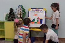 Мәктәпкә әзерлек төркеме балалары схемадан карап рәсемнәр төзәргә яраталар.
