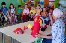 Кечкенәләр төркеме тәрбиячесе Юсупова Р.М. балаларны юлда йөрү кагыйдәләре бнлән таныштыра.