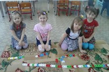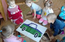 I кечкенәләр төркеме балалары ПДД бүлмәсендә бергәләп машинаны җыйдылар.