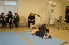 На курсах повышения в этом году включены лекции и практические занятия по оказанию первой медицинской помощи, которые проводятся под руководством инструкторов в РКБ. Воспитательница Гарипова Д.С. во время практических занятий.