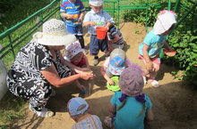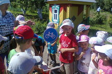 I кечкенәләр төркеме балалары белән янгын сүндерү машинасы белән белемнәрен ныгытабыз.