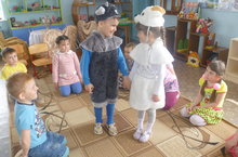 Уртанчылар төркеме балалары Г.Тукай "Кәҗә белән сарык" әкиятне сәхнәләштереп уйныйлар.