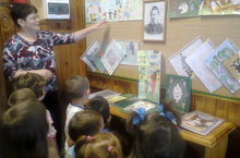 I кечкенәләр төркеме тәрбиячесе Лутфуллина З.Ә. балаларны "Тукай безнең күңелебездә" рәсем күргәзмәсе белән таныштыра. 12.04.2016