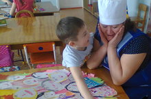 "Сихри бармаклар" түгәрәгендә икенче кечкенәләр төркеме балалары камырдан бавырсаклар ясыйлар 22.12.2015
