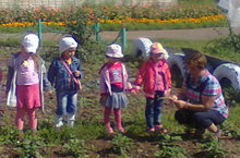 II кечкенәләр төркеме балалары белән "Мин һәм бакча" атналыгында бакчага экскурсия оештырдык. Бакчада үсүче җиләк - җимеш һәм яшелчәләр белән таныштык. 18.08.2015