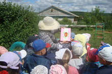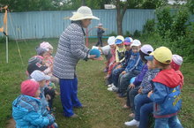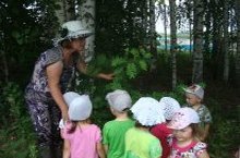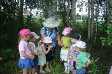 Тәрбияче Наҗия Әдһәмовна балаларны дару үләннәре белән таныштыра. 29.06.2015