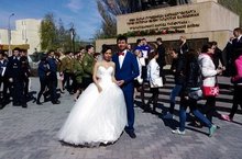 Парадтан соң яшь парларыбыз "Мәңгелек утка" чәчәкләр куйдылар . 12.05.2015
