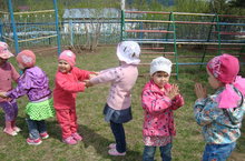 На прогулке играем в словесно-подвижные игры. Мои ручки хороши У соседа лучше. Трата-та, трата-та Мы играем, трата-та. 18.05.2015