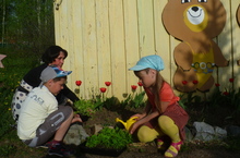 Мәктәпкә әзерлек төркеме балалары үзләре чәчеп үстергән чәчәк үсентеләрен утырталар. Алар да бакчаның чәчәккә күмелеп утыруын телиләр.