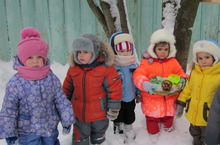 II кечкенәләр төркеме балалары белән безнең якта кышлаучы кошларны җим белән сыйлыйлар.