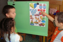 Играя в игру "Коллаж",дети находят одинаковые игрушки,считают их,называют признаки.