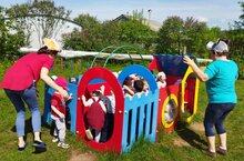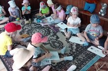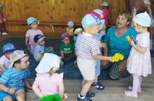Без буген "Бакчачы"уенын уйнадык. Балалар белән чәчәкләргә лейкалар белән сулар сиптек.