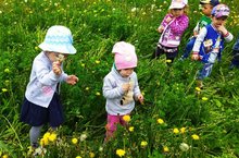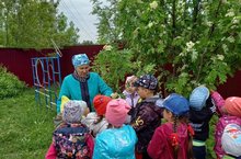 Буген без, кечкенәләр төркеме балалары белэн, куптэн тугел кузэткэн сары тузганакларнын инде ап-ак чэчэккэ эверелулэрен карадык.Чэчэклэргэ ореп ,аларнын орлыкларын очырттык.Шулай ук,чэчэк атучы сирень куакларын кузэттек,яфракларынын,чэчэгенен тослэре турында сойлэштек.
