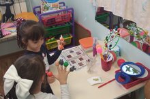 На индивидуальном занятии по логопедии дети в форме сказки закрепили звуки и составляли предложения.