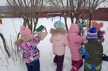 На свежем воздухе ребята катались с горки, поиграли в подвижные игры. Не забывали своих пернатых друзей -почистили кормушки и угостили птиц разными семенами и кормушки.