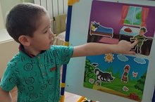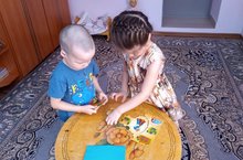 Зарина и Самира играют в Лэпбук и составляют разрезные картинки.