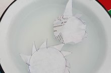 Бүген эксперимент көне булды. Зәринәбез суда кәгазь белән тәҗрибә күрсәтте. Балаларга бик ошады.