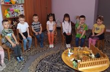 Сегодня были в гостях у бабушки. Для нее в магазине купили гостинцев. Познакомились с ее домашними животными. На поезде обратно приехали в наш садик.
