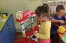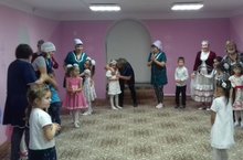 Бүген балалар белән рус һәм татар милли курчаклары белән таныштык. Милли уеннар уйнадык. Русча уеннар өйрәндек. "Маша в ягодки пошла" һәм "Зайка беленький сидит".