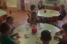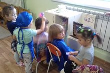 2 кечкенәләр төркеме балалары профориетация буенча чәчтараш һөнәрен үзләштерәләр.