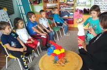 Дети подготовительной группы занимаются по теме: "Детский сад". Они рассказывают о садике, о профессиях сотрудников, про любимые игрушки и игры.