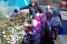 Балаларга Беслан шәһәрендә булган вакыйгалар турында сөйләдек. Ул балаларның бер йотым суга тилмерүләренә чәчәкләрен сусыз үсә алмауларына тиңләдек. Шуна күрә бакчадагы чәчәкләргә сулар сиптек.