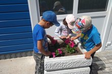 Сегодня в детском саду "День натуриалиста". Дети прошлись по территории детского сада и познакомились с цветами, посаженные в саду детского сада.