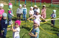 Младшие группы в день защиты детей играли в подвижные игры со сказочными героями.