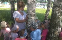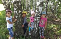 "Ак кием кигән, яшел чугын әлгән", дигән табышмакка, җавапны без бакча янәшесендәге каенлыктан таптык. Балалар белән каен агачларын күзәттек, яннарында истәлеккә фотога төштек.