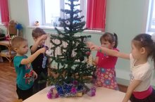 Уртанчылар-зурлар төркемендә балалар үзләре ясап алып килгән уенчыклар белән чыршы бизәделәр.
