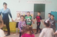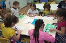 Шөгыльдән тыш вакытларынды мәктәпкә әзерлек төркеменә йөрүче малалайлар һәм кызлар трафарет белән рәсем төшерү белән шөгыльләнәләр, әзер рәсемнәрне төркем бүлмәсен бизәү өчен кулланалар.