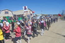 8 май көнне мәктәбебезнең барлык укучылары һәм укытучылары “Үлемсез полк” акциясе кысаларында Бөек Ватан сугышында катнашкан әби-бабаларын искә алып һәм аларга дан җырлап, авылыбыз урамына чыктылар!