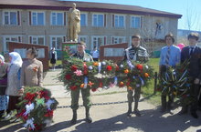 Хөрмәтле ветераннарыбыз өчен үткәрелгән бәйрәмнән соң, Бөек Ватан сугышында һәлак булганнар истәлегенә һәйкәл янына Дан гирляндасын кую тантанасы булды.