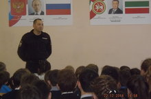 22 декабрь көнне мәктәптә участок полиция хезмәткәре Хуснутдинов Роберт Наиль улы белән Яңа ел һәм кышкы каникуллар алдыннан профилактик әңгәмә булып узды. Укучылар үзләрен кызыксындырган сорауларга тулы җаваплар алдылар.