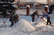 Мәктәптә яңа елны каршылауга әзерлек эшләре башланды. Һәр класс аерым билгеләнгән участокта кар сыннары ясау белән шөгыльләнә. Укучылар бик тырышып эшлиләр.