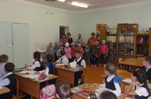 Нәни дусларыбыз мәктәбебездә кунакта. Карадуган балалар бакчасының мәктәпкә әзерлек төркеме балалары үзләренең апалары белән мәктәп тормышы белән танашырга килгәннәр.Дусларыбызга мәктәп бик ошады, икенче елга алла бирсә укырга киләбез дип киттеләр.